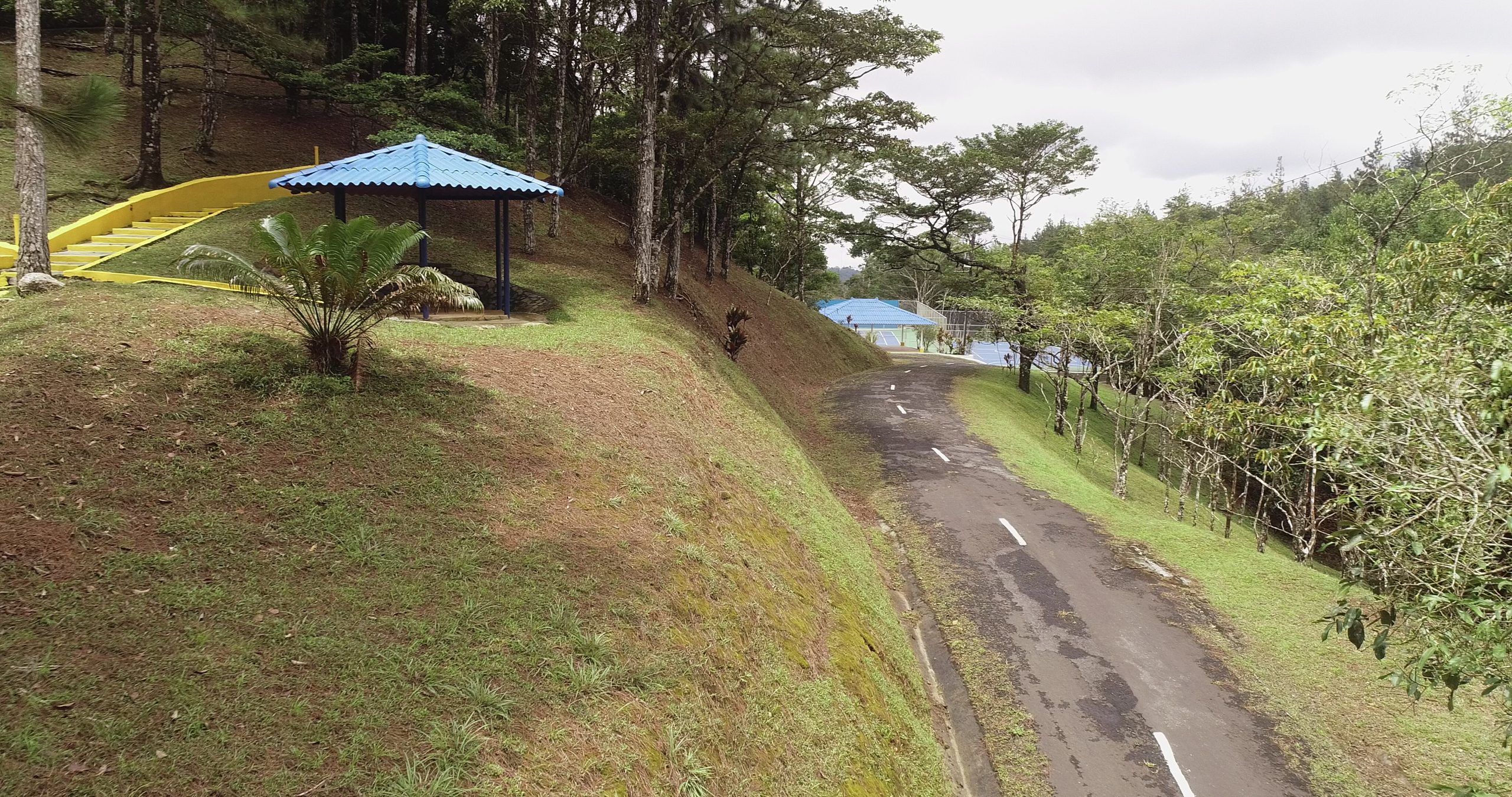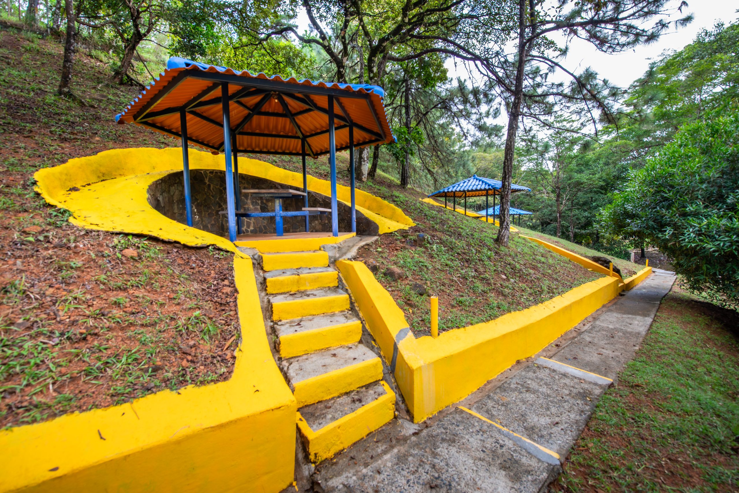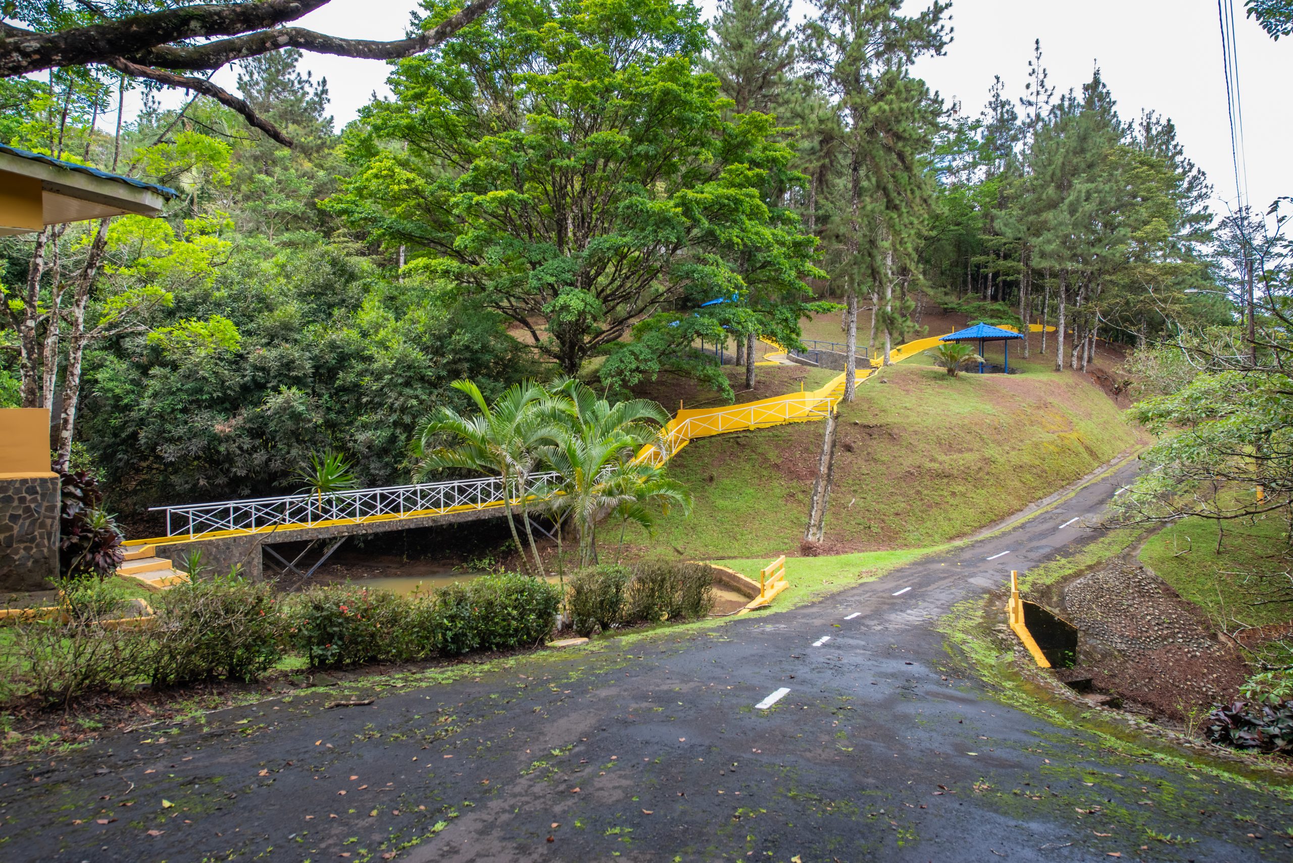 El área cuenta con Gazebos, salón biblioteca, una pista para patinaje, veredas, escalinatas y puentes para disfrutar del área.