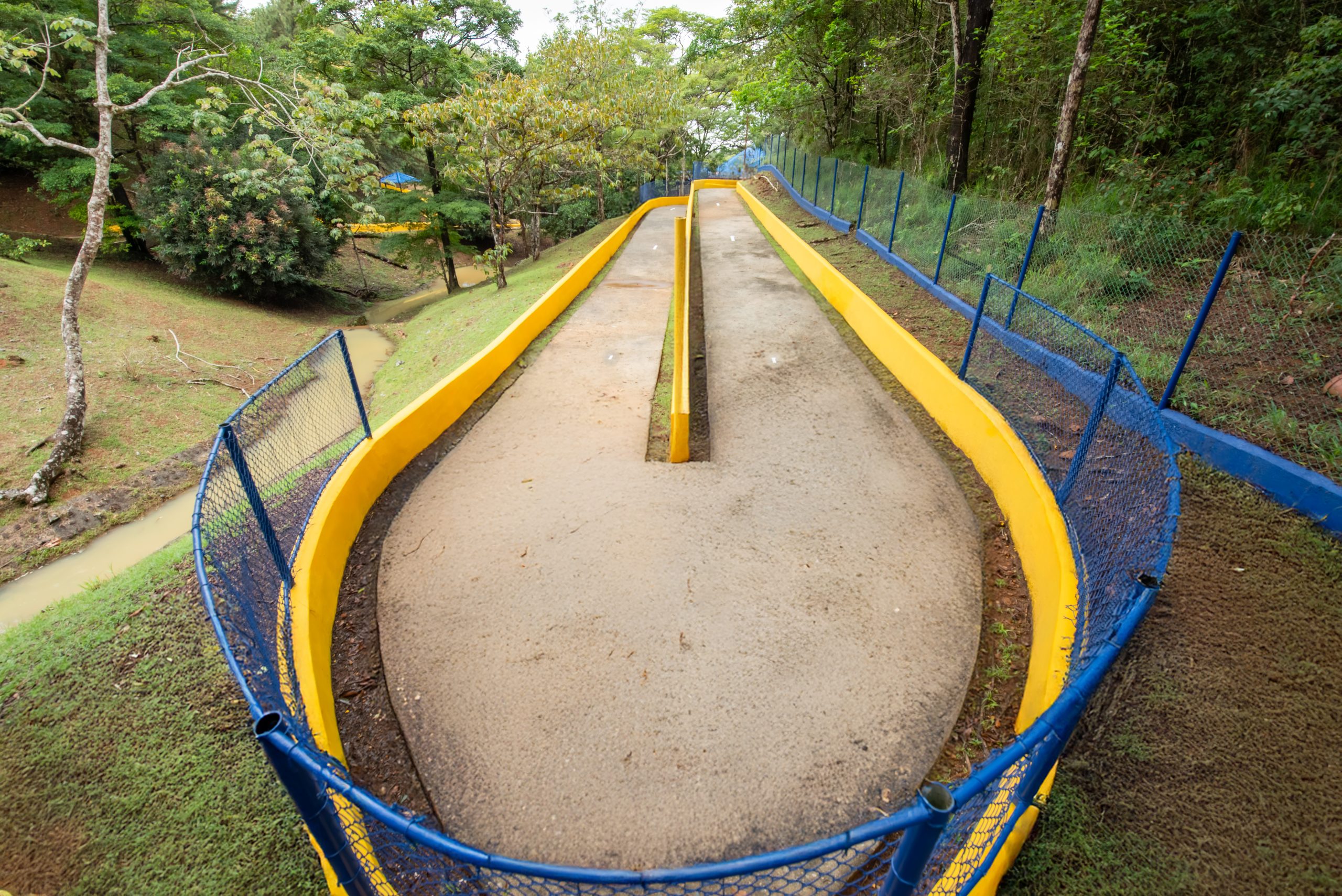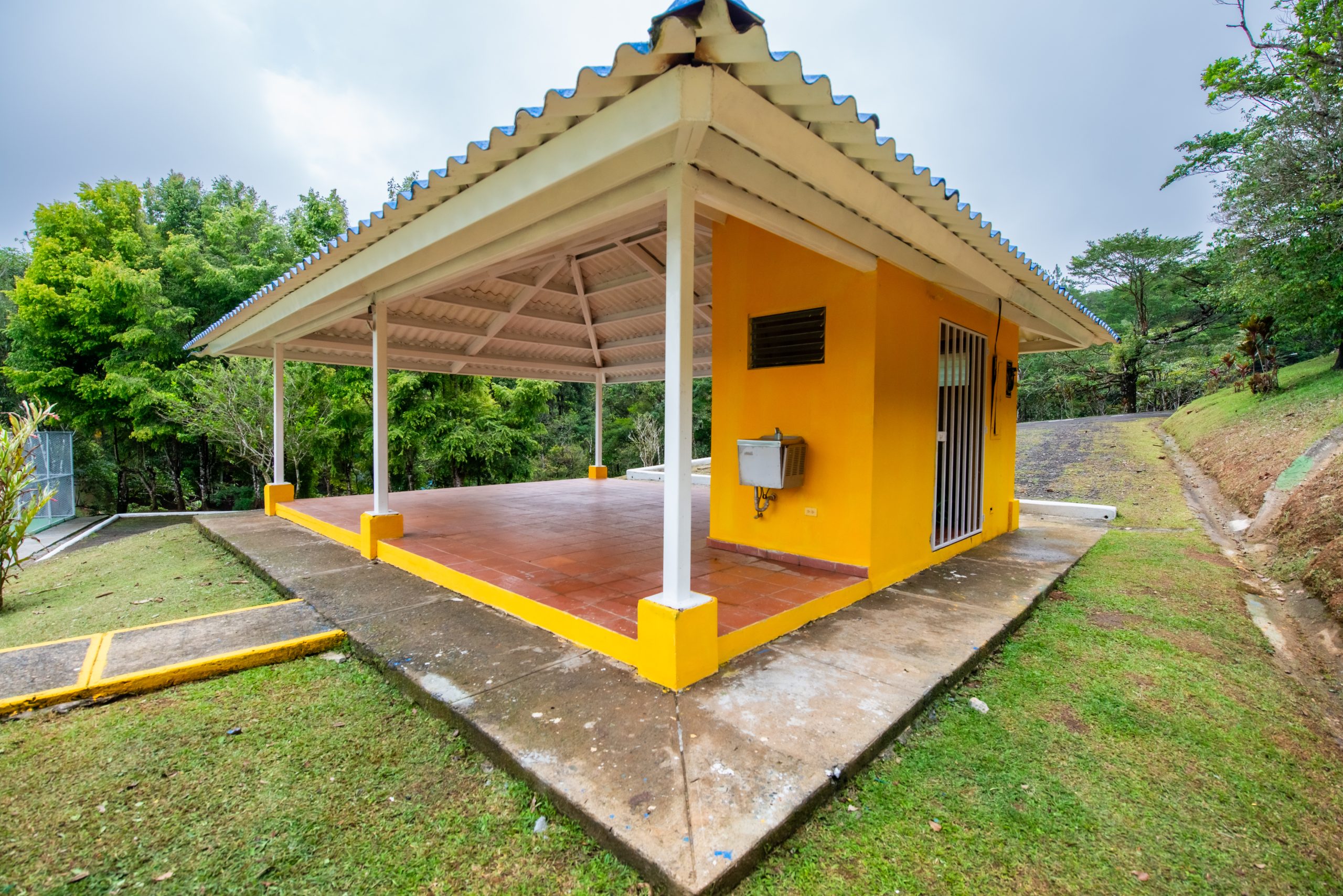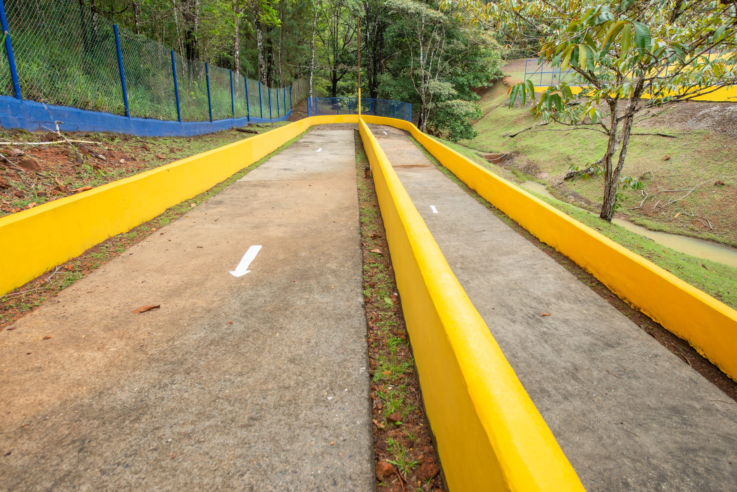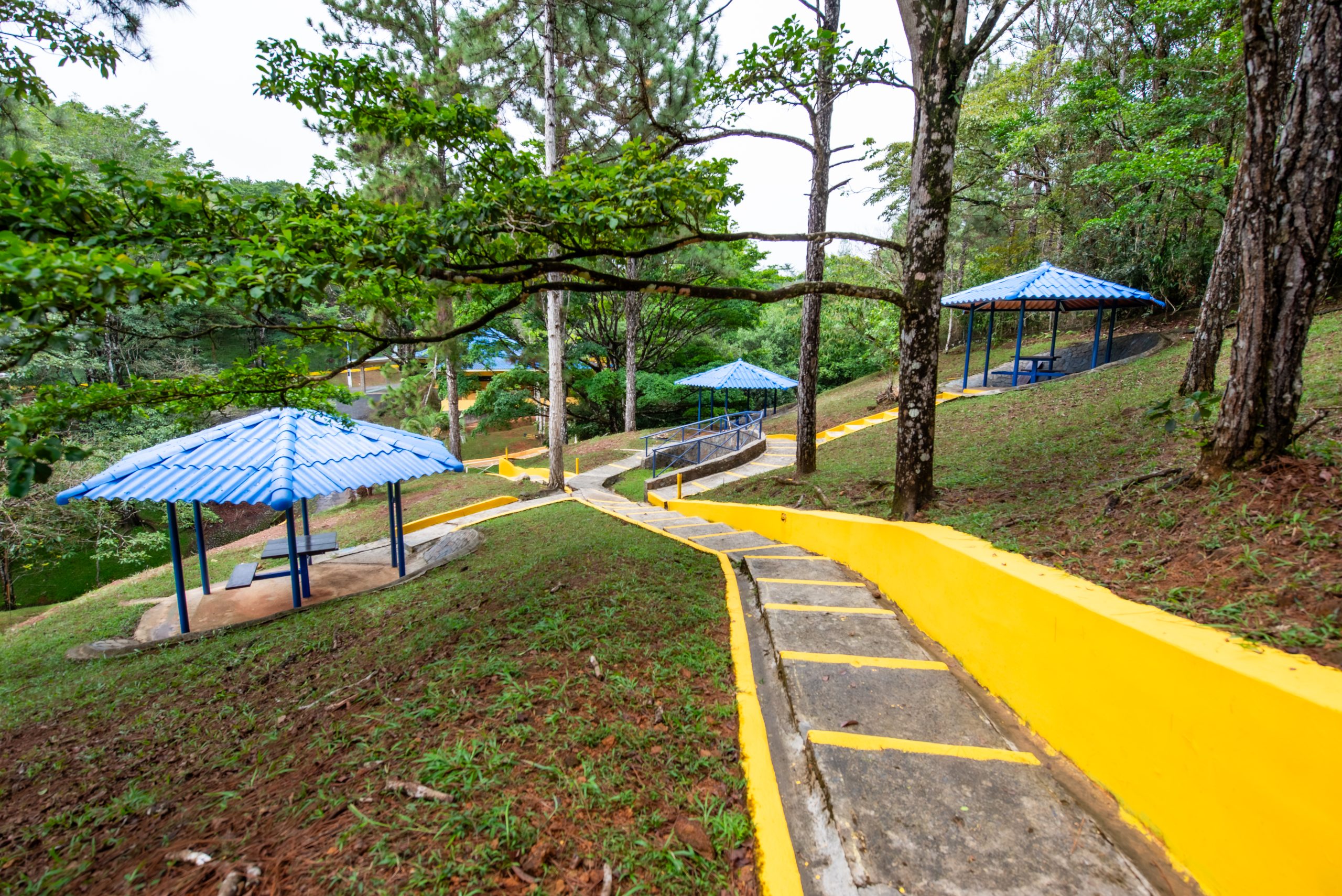 El área cuenta con Gazebos, salón biblioteca, una pista para patinaje, veredas, escalinatas y puentes para disfrutar del área.