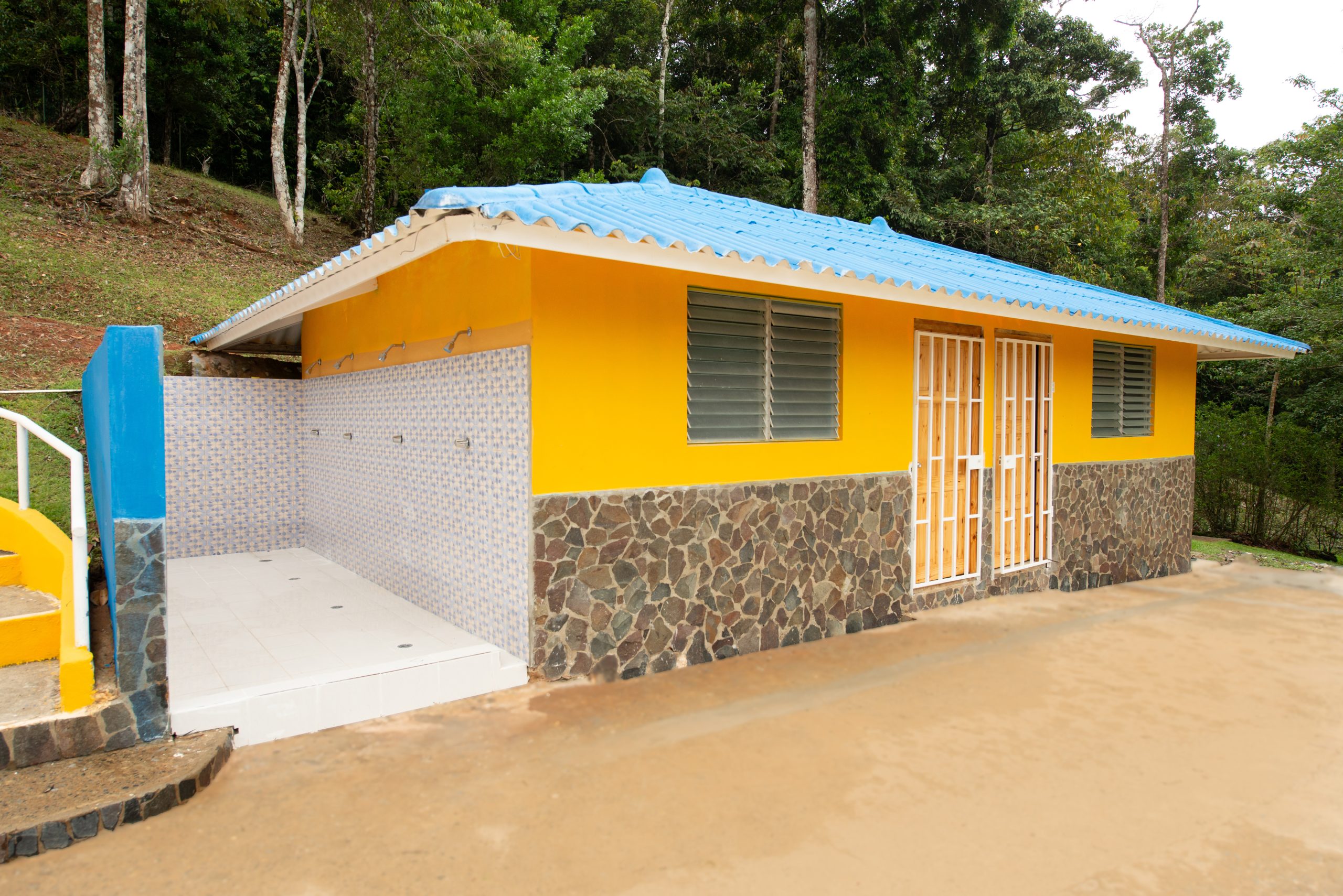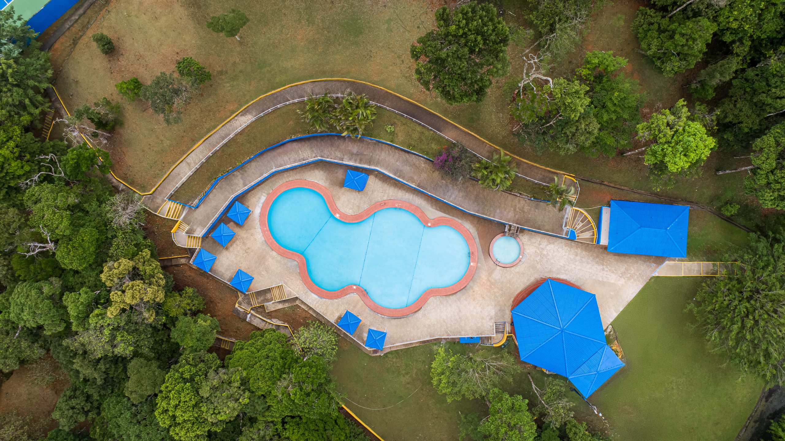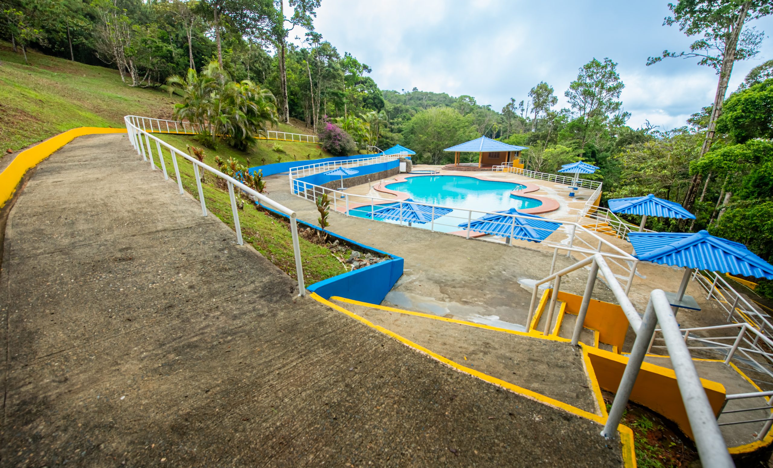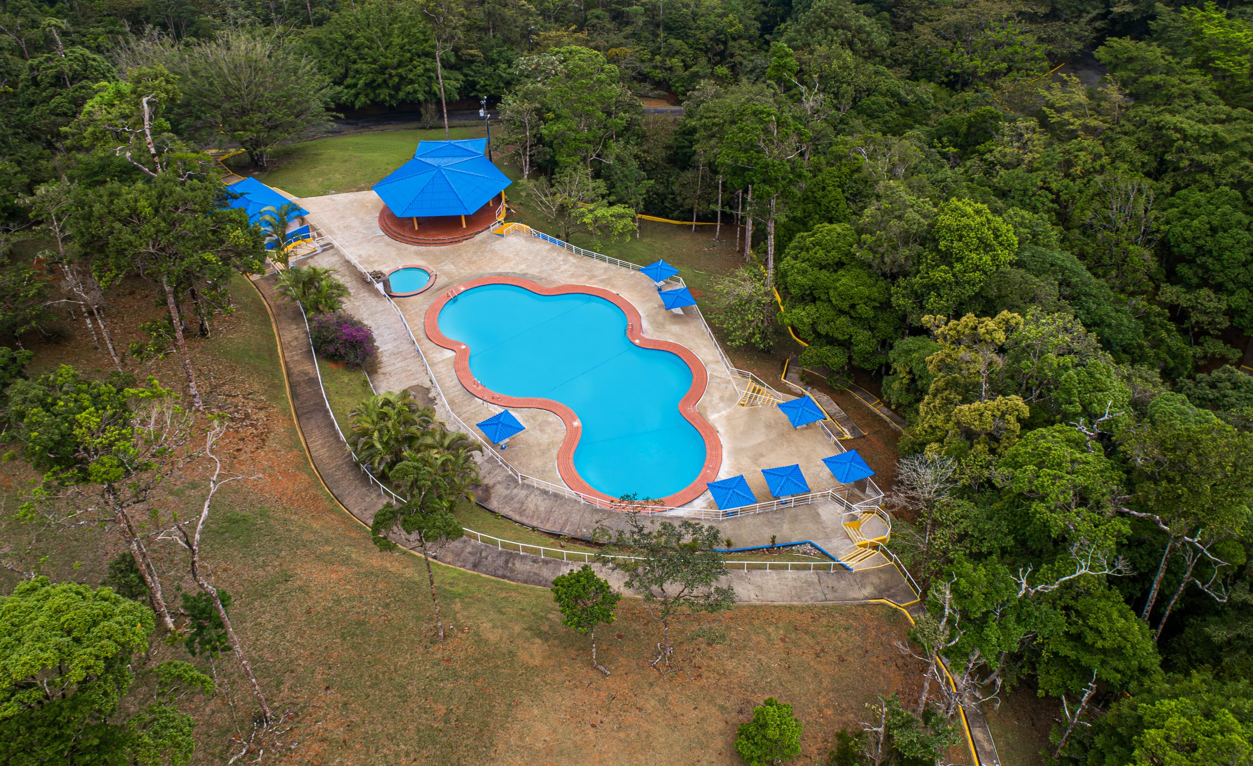 El área de la piscina cuenta con un bohío de 115 m2 con cocina y área abierta, piscina de adultos y otra para niños, baños, vestidores y bohíos.
